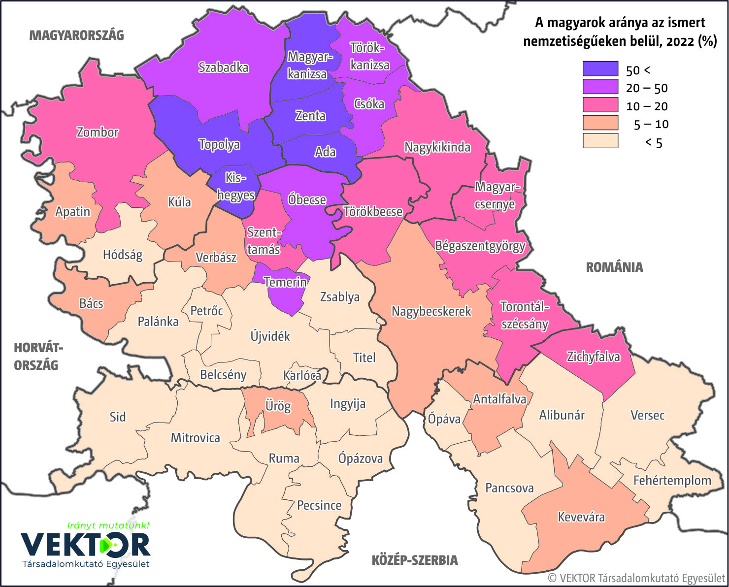 A fentiek alapján nem meglepő, hogy a magyarok aránya a Vajdaság népességén belül nagymértékben csökkent. Az ismert nemzetiségű népességen belül a magyarok aránya az elmúlt bő 10 évben 13,7%-ról 11,4%-ra esett vissza.