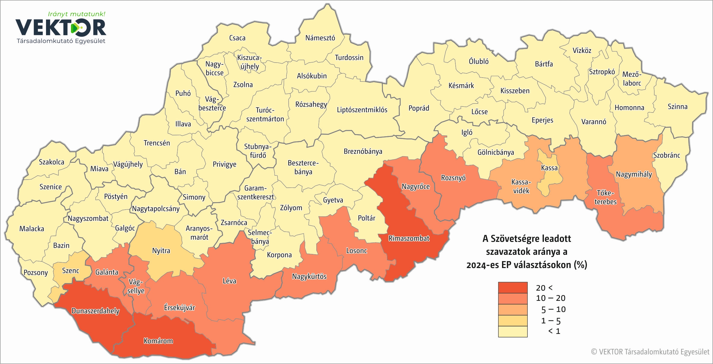 A Magyar Szövetség a júniusi EP-választáson 57 350 voksot szerzett, ami azt jelenti, hogy a szavazati joggal rendelkező felvidéki magyarok alig ötöde támogatta az etnikai pártot. A legtöbb szavazatot – nem meglepő módon – a Dunaszerdahelyi, a Komáromi és az Érsekújvári járásokban szerezte a Magyar Szövetség, ám az itt begyűjtött bő 27 ezer szavazat annak tükrében elenyésző, hogy ebben a három járásban él a legtöbb felvidéki magyar, nagyjából 155 ezer választókorú magyar nemzetiségű szlovák állampolgár.